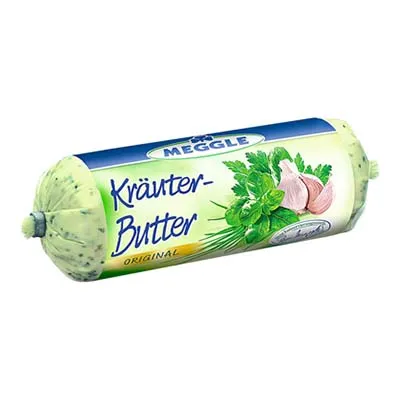 Keine gewöhnliche Butter: Die Butter von Meggle mit verschiedenen Gewürzrichtungen kann hervorragend zu den unterschiedlichsten Gerichten kombiniert werden. Ob beim Grillen, auf Brot oder in einer Suppe – die gewürzte Butter verleiht jedem Gericht einen leckeren Geschmack. Sie erhalten die Kräuterbutter, 62 % Fett, aus dem Hause Meggle in einer 125 g Packung.