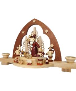 7 klassische rote Kerzen schmücken diesen Miniatur Schwibbogen.