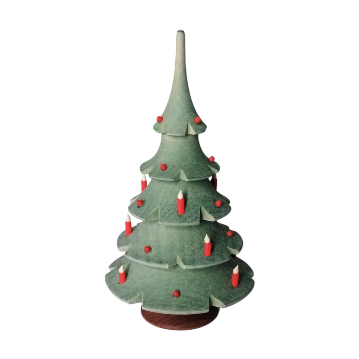Der Weihnachtsbaum steht fest auf seiner runden Basis und strahlt eine warme, festliche Atmosphäre aus. Seine grüne Farbe verleiht ihm ein natürliches und harmonisches Aussehen. Mit einer Höhe von 12 cm und einer Tiefe von 5,5 cm besitzt er kompakte Maße, die ihn ideal für Dekorationen machen.