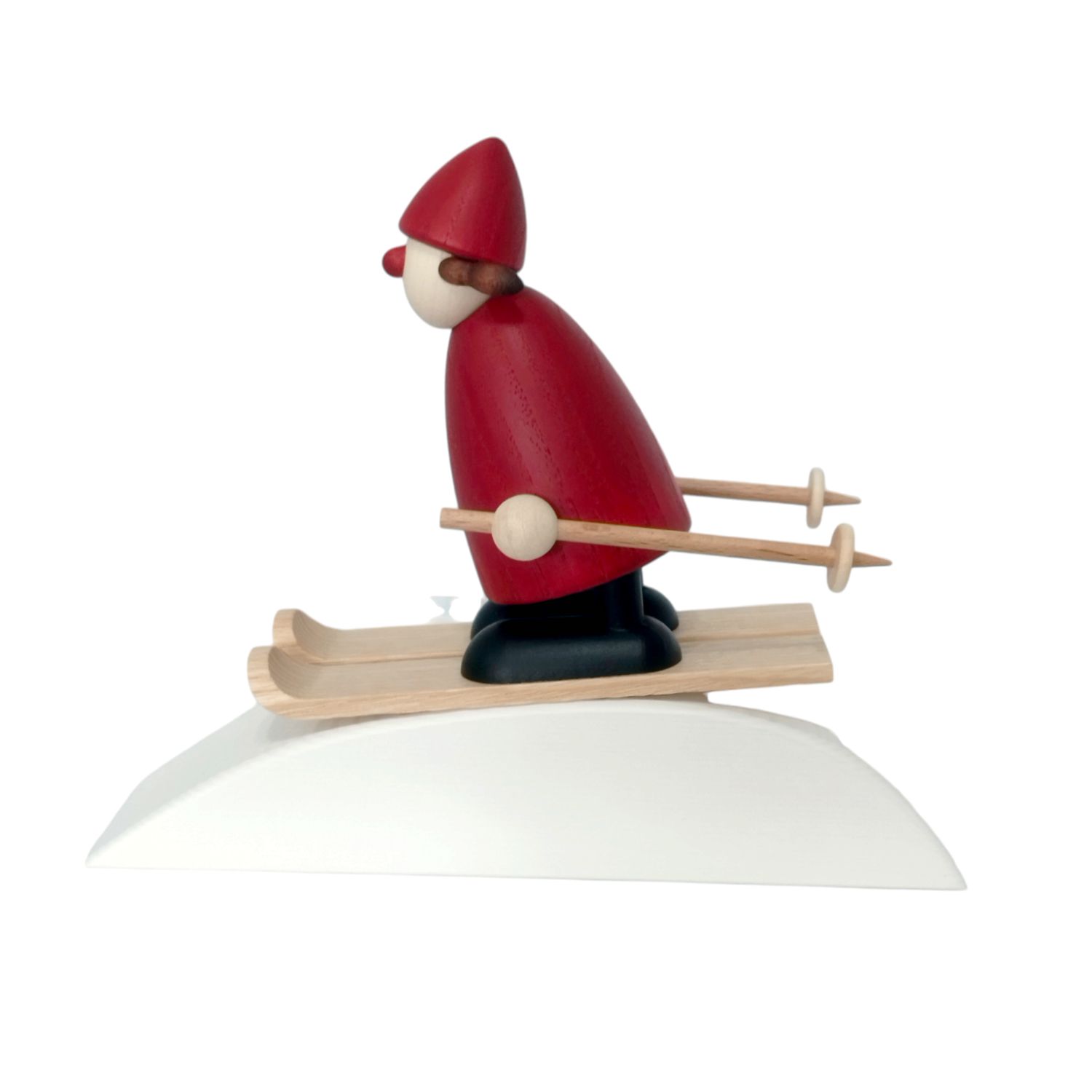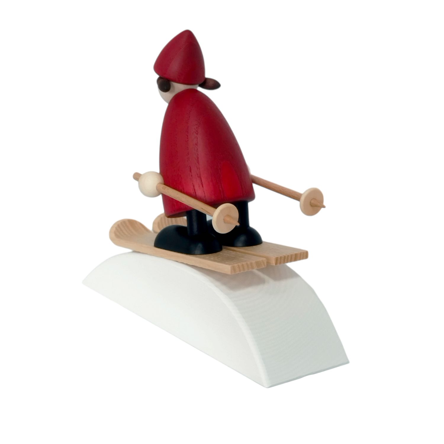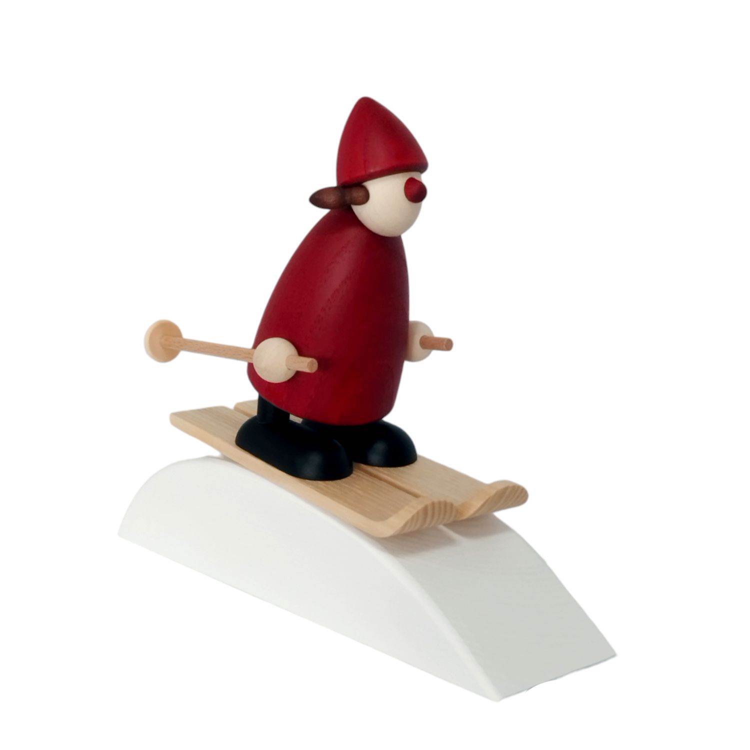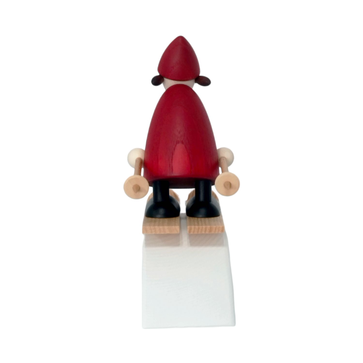 Aus der Serie der kleinen Weihnachtsmänner stammt diese entzückende Weihnachtsfrau auf Ski mit Schneehügel. Diese liebevoll handgefertigten Figuren sind mittlerweile das heimliche Markenzeichen von Björn Köhler Kunsthandwerk geworden und erfreuen sich großer Beliebtheit.
