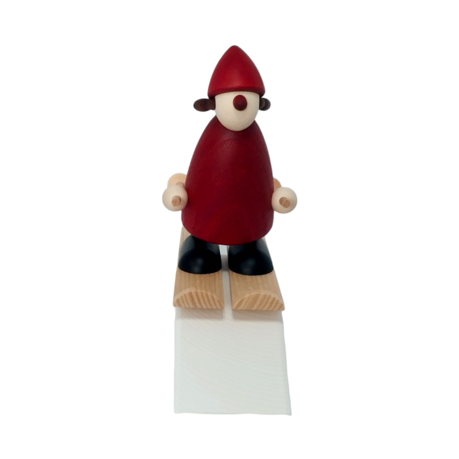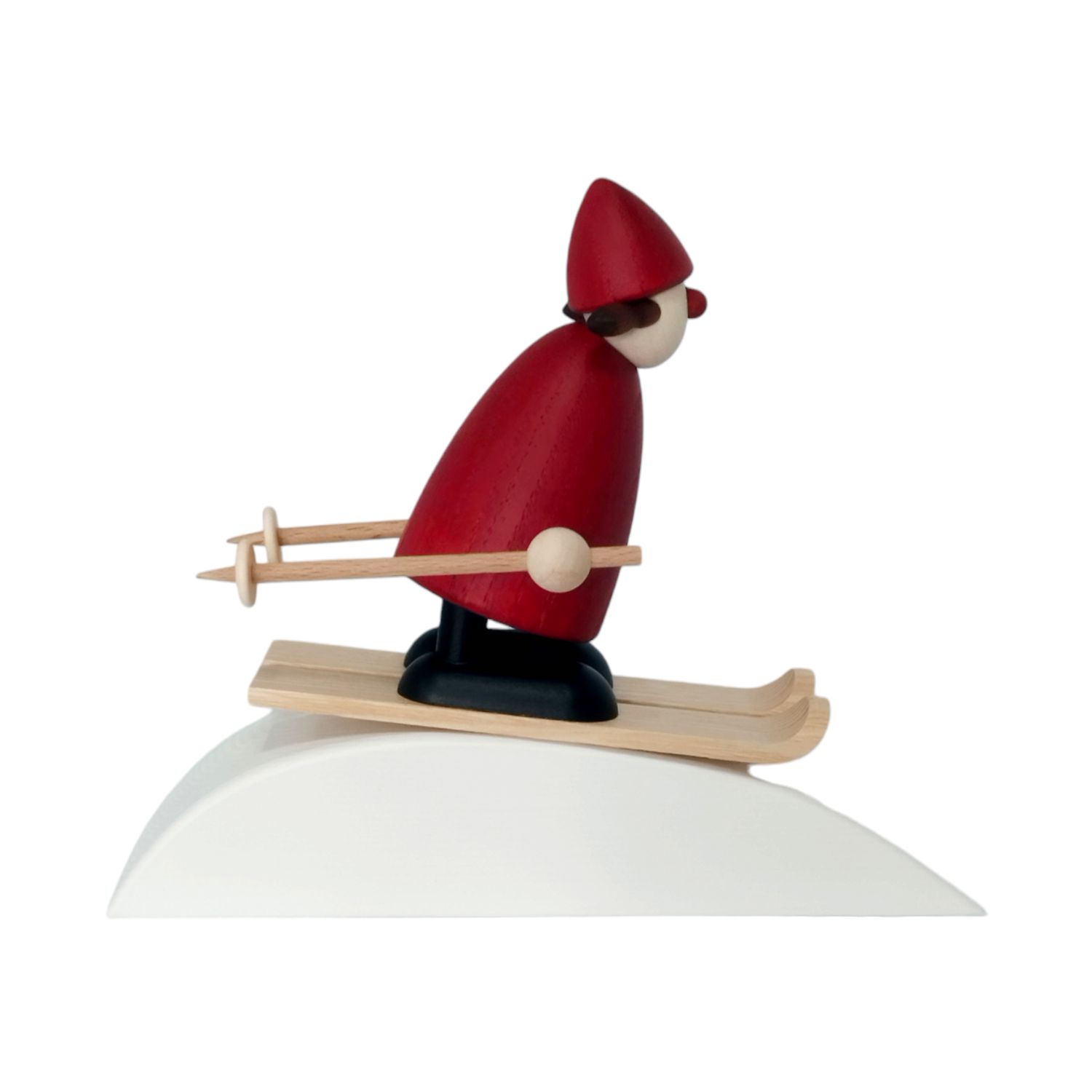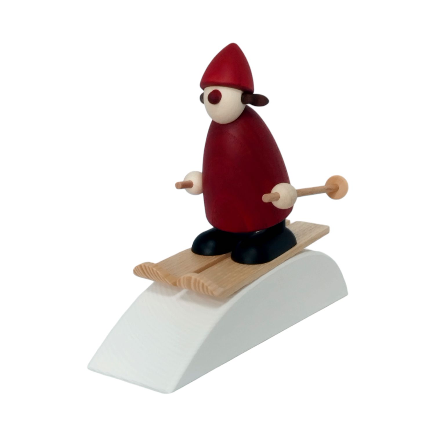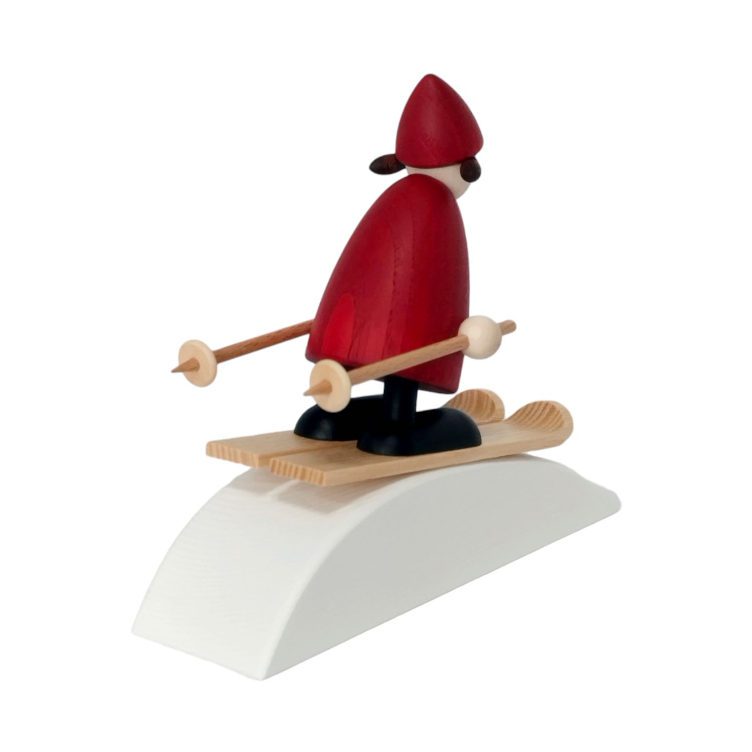 Aus der Serie der kleinen Weihnachtsmänner stammt diese entzückende Weihnachtsfrau auf Ski mit Schneehügel. Diese liebevoll handgefertigten Figuren sind mittlerweile das heimliche Markenzeichen von Björn Köhler Kunsthandwerk geworden und erfreuen sich großer Beliebtheit.